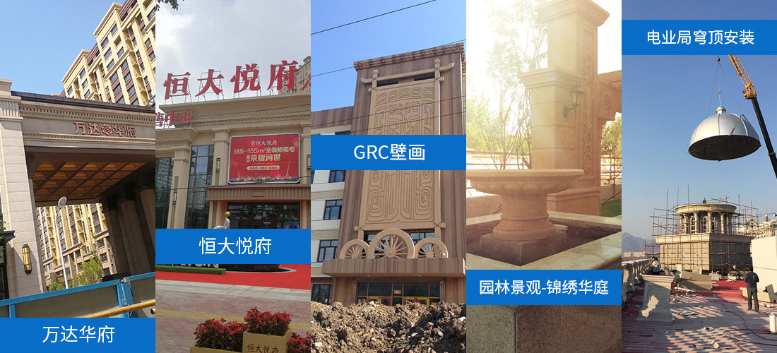 本企業(yè)的產(chǎn)品被廣泛應(yīng)用于建筑室內(nèi)及外墻的裝飾、裝修工程和市政、園林景觀的造景等。主要產(chǎn)品有檐線、門窗裝飾線、穹頂、扶手墩、山花、浮雕裝飾板、中式西式的傳統(tǒng)裝飾、歐式羅馬裝飾柱、仿蘑菇石、仿剁斧石、仿干粘石、假山、噴泉、圓雕、藝術(shù)壁畫、外墻掛板、室內(nèi)石膏線、燈盤、浮雕、羅馬柱等。均可根據(jù)客